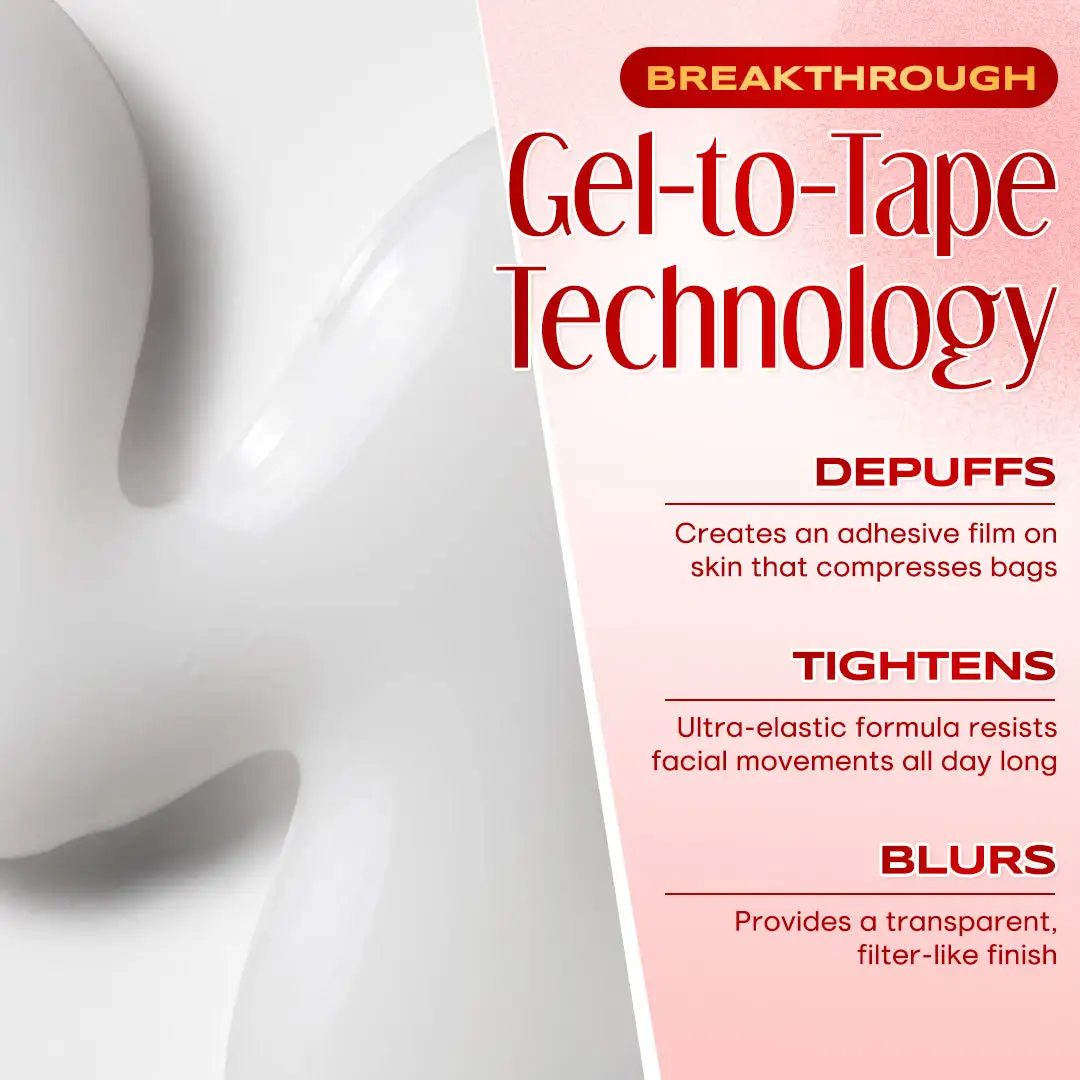 With a gel-to-tape technology, the formula transforms into an invisible film that compresses, tightens, and blurs eye bags on application, all whilst remaining ultra-comfortable, all day long.